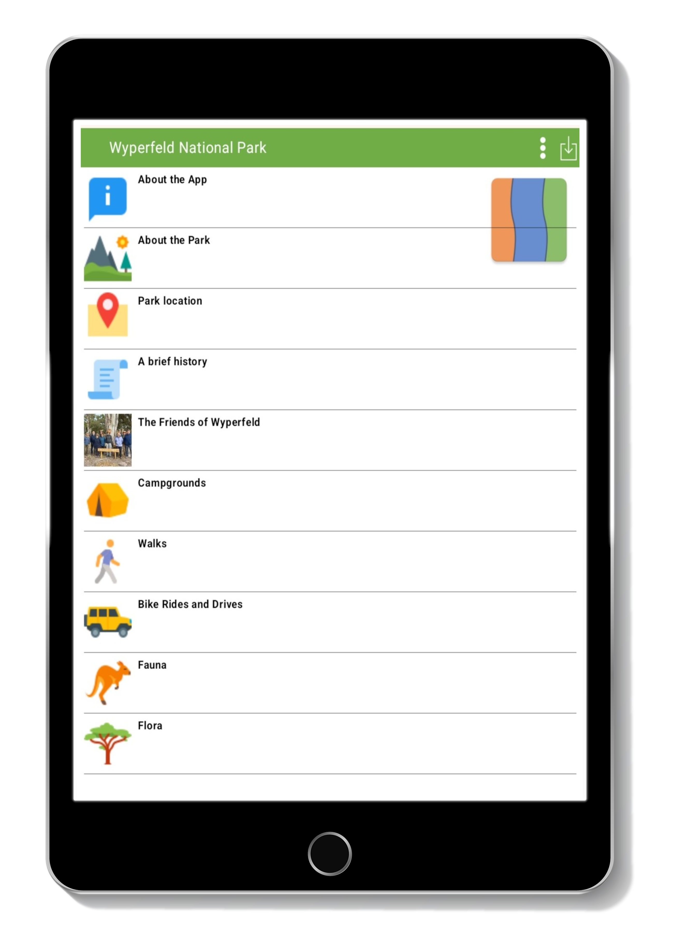 - The App has been designed to work off-line due to limited internet coverage in the park.